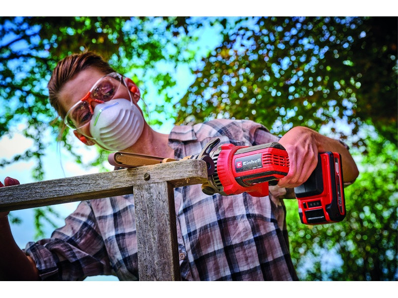 Az Einhell TE-BF 18 Li-Solo akkumulátoros szalagreszelő egy könnyen kezelhető és kézreálló készülék, amelyet nehezen elérhető helyek csiszolására és sorjázására terveztek. A szalagreszelő a Power X-Change rendszercsalád tagja, ezért a sorozat valamennyi akkuját és töltőjét használhatja hozzá. A készüléket két különböző szélességű cserélhető csiszolókarral szerelték fel. A 9 mm széles csiszolókar tökéletes szűk helyek és a nagyon apró, kényes munkadarabok csiszolására. A 13 mm széles csiszolókar szélesebb, sík felületek megmunkálására is használható. A legkülönfélébb helyezetekben végzett munkák egyszerű és rugalmas kivitelezése érdekében a kar 90°-ban dönthető. A csiszolószalag sebessége a 250 és 1700 m/perc közötti tartományban szabályozható. Ez a megoldás lehetővé teszi, hogy a sebességet mindig a munkadarab tulajdonságaihoz és az anyaglehordás mértékének figyelembevételével állíthassa be. A folyamatos használat lehetővé teszi, hogy még a folyamatos munkavégzés is kényelmes legyen a készülékkel. A csiszolószalagot szerszám nélkül, egy erre a célra tervezett kar segítségével cserélheti ki. A futást a csiszolókaron lévő csavarral állíthatja be. Az ergonomikus kialakításnak és a Softgrip borítású felületnek köszönhetően a szalagreszelő kezelése rendkívül egyszerű. A robusztus motorborítást Softgrip borítással látták el. A pótfogantyú optimális kezelést tesz lehetővé. A csiszolókar erős fémből készült. A tiszta munkavégzés biztosítása érdekében a gyári csomagolásban található egy adapter, melynek segítségével a készülékhez csatlakoztathatja az Einhell száraz-nedves porszívóit. A gyári csomagolás tartalmaz egy 12 részes, két különböző szélességű csiszolószalag-készletet (457 mm hosszúságú, mindegyik 2x P60, P80, P120), valamint egy praktikus tároló- és hordtáskát. Akku és töltő nélkül; ezeket külön vásárolhatja meg.