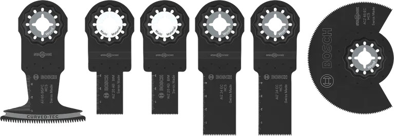A fa és puha fém készlet megbízható oszcilláló multifunkciós fűrészlapokat tartalmaz puhafa, puha fém, műanyag és műanyag bevonatú táblák merülő vágásához.